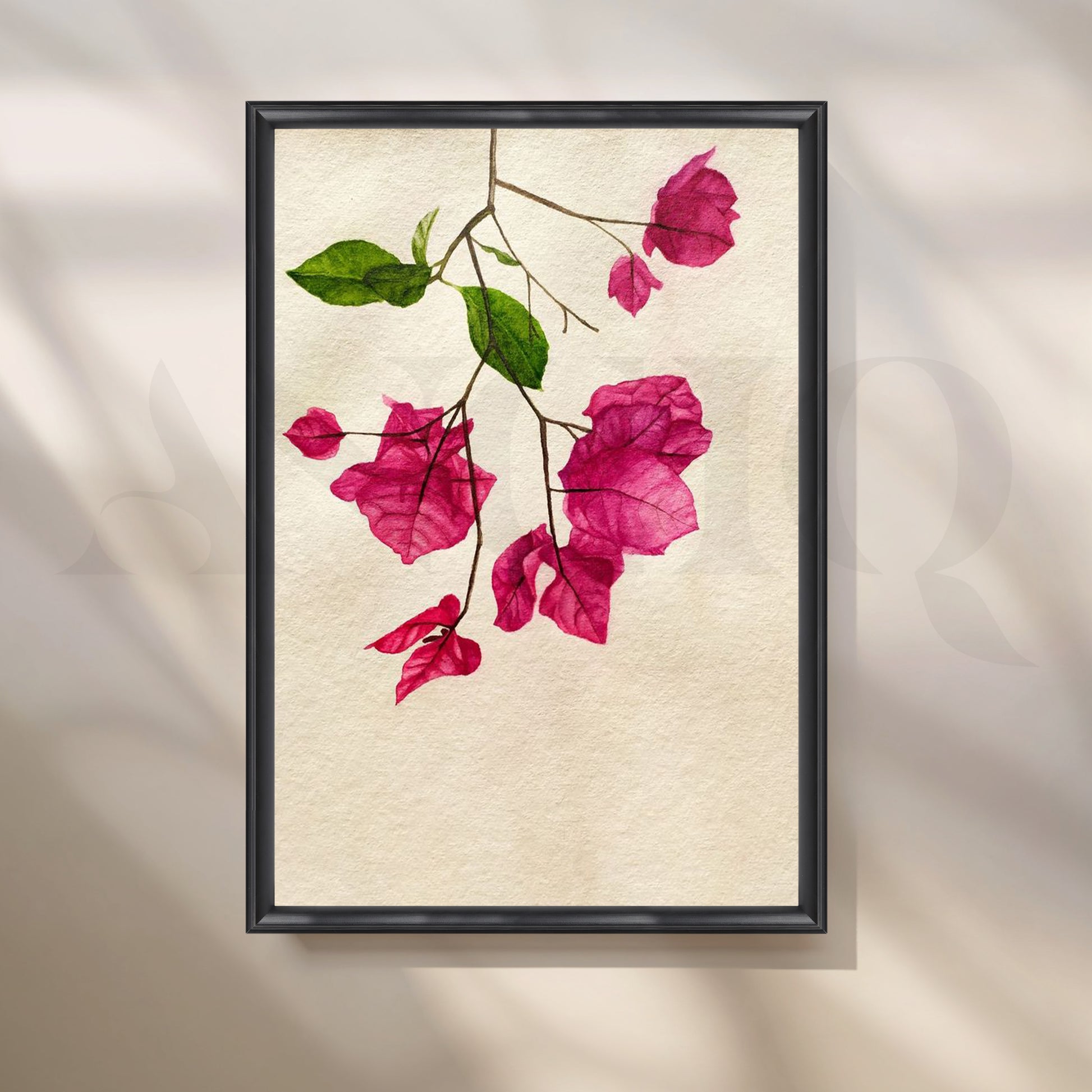 Anciq ‘Tropical Bloom’ Canvas Artwork features hand-painted pink bougainvillea on textured beige, perfect for neutral-toned living rooms or boho bedroom walls. A great pick for floral lovers and fans of botanical wall decor with an artistic twist.