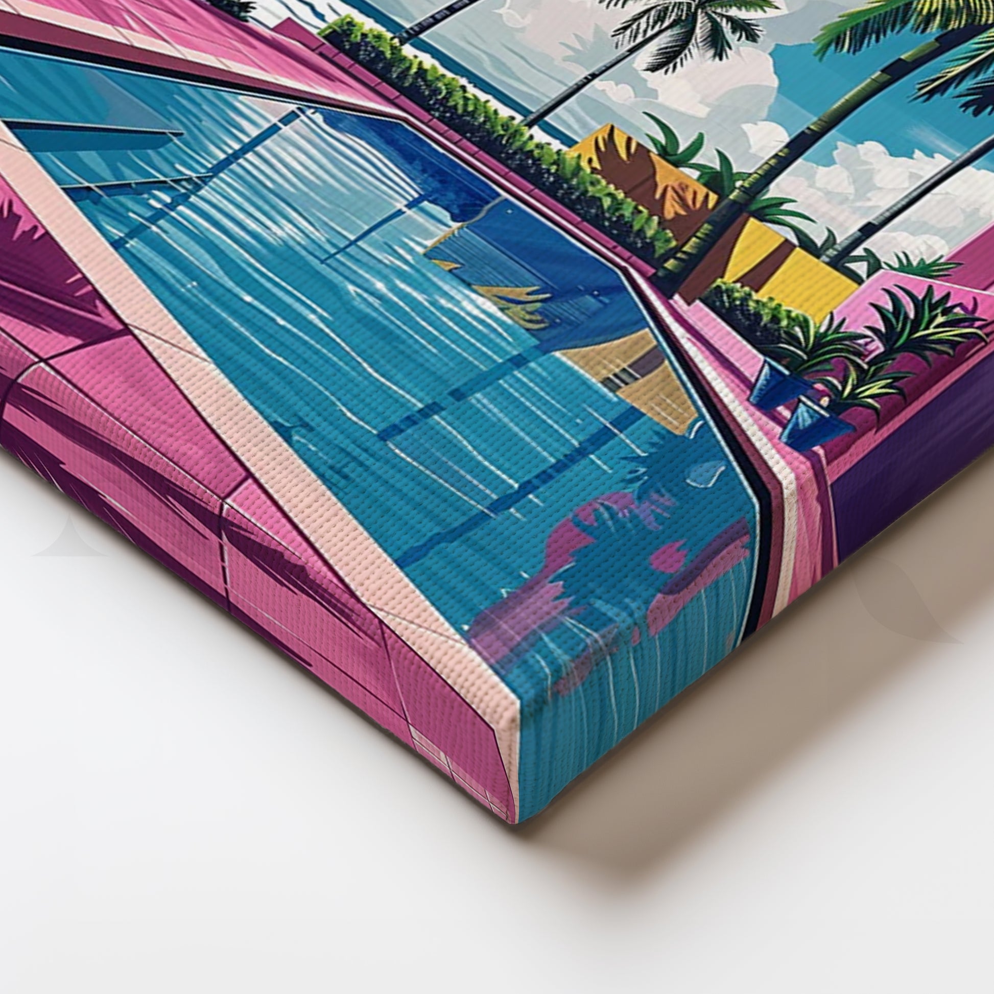 Miami Pool Club Neon Pop-Art Canvas – Tropical Palm Courtyard by the Sea