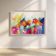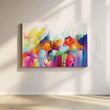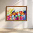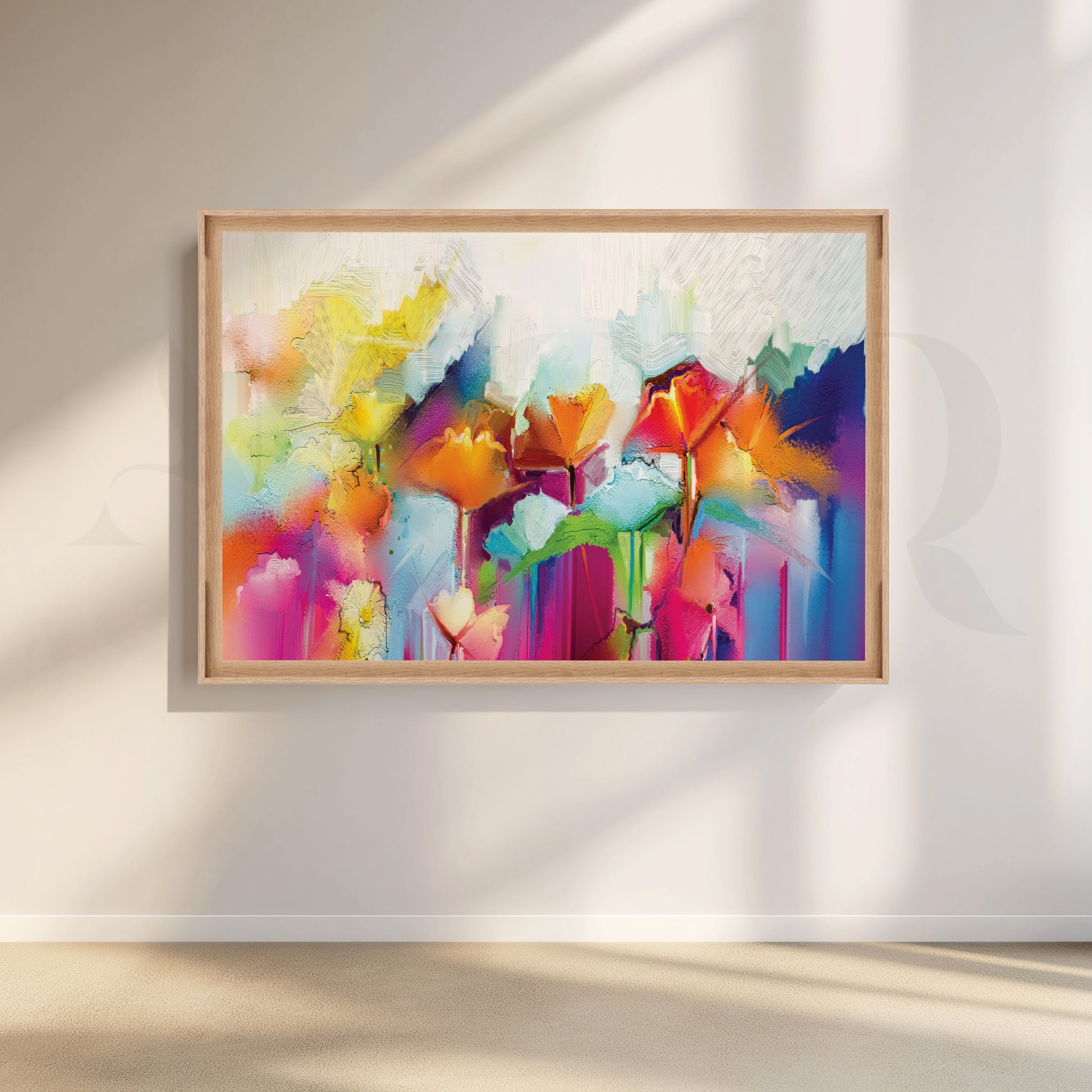 This abstract floral artwork depicts explosion of color that will add a touch of elegance to any room. The stunning painting colors create a beautiful textured effect, while the soft background allows the bold colors to pop. This piece is sure to be a conversation starter in your home.