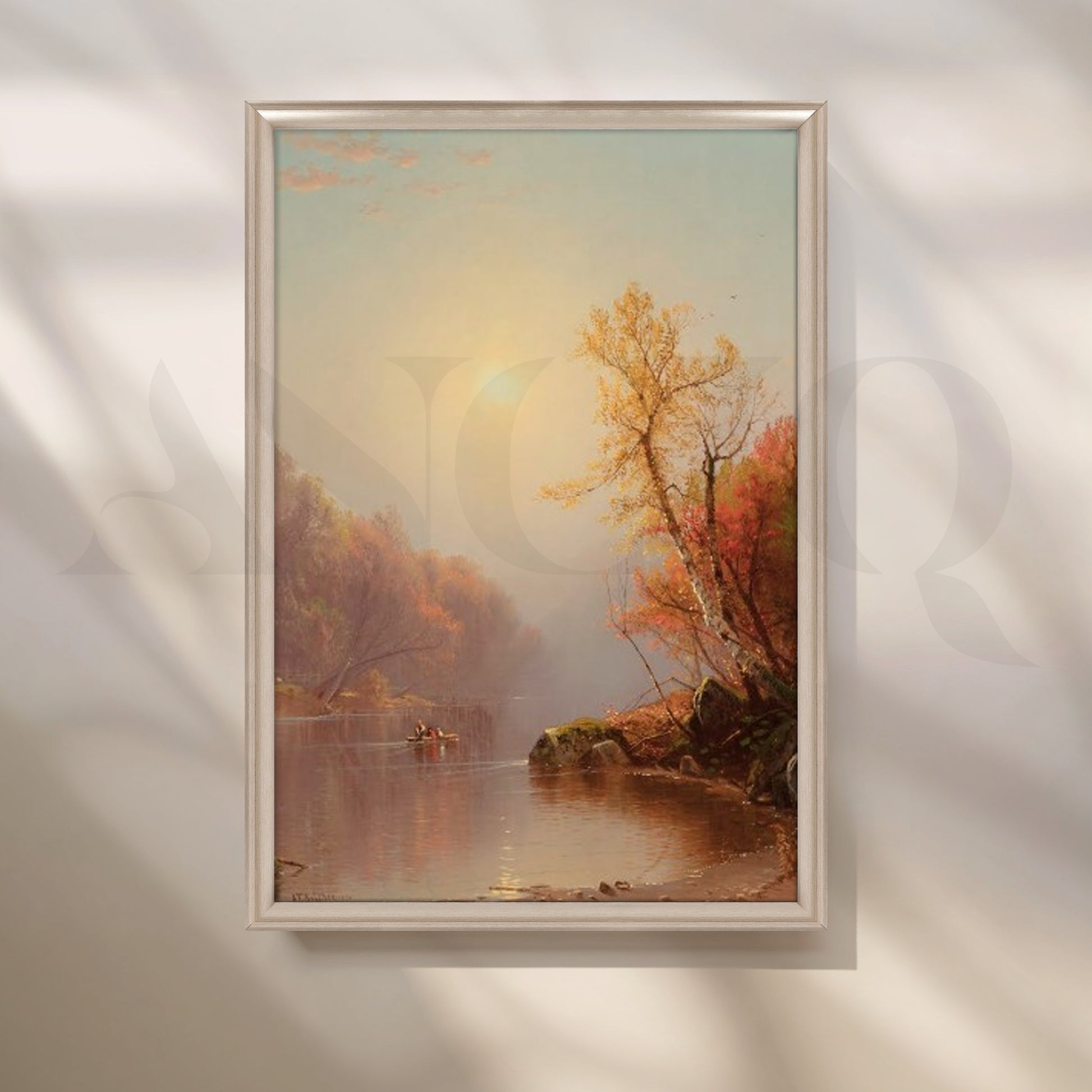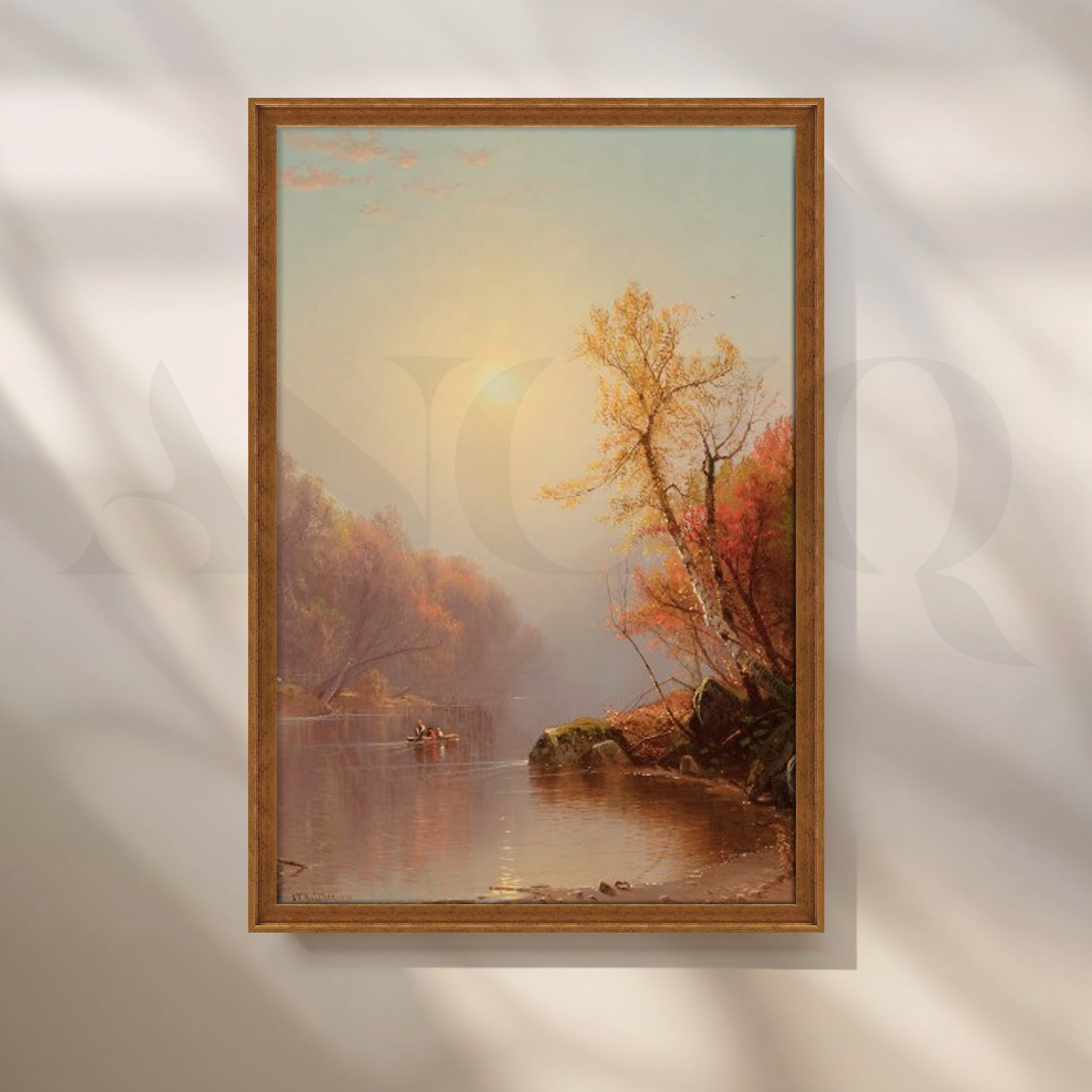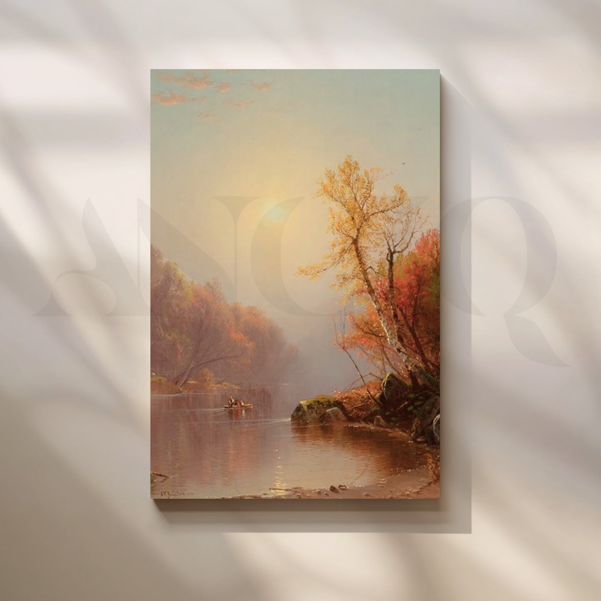 Anciq ‘Twilight River Row’ Canvas Painting for Reading Nook offers soft, dreamy tones with autumn trees and a gently glowing sky. Ideal for cozy corners, bedrooms, or relaxation zones needing a poetic visual.