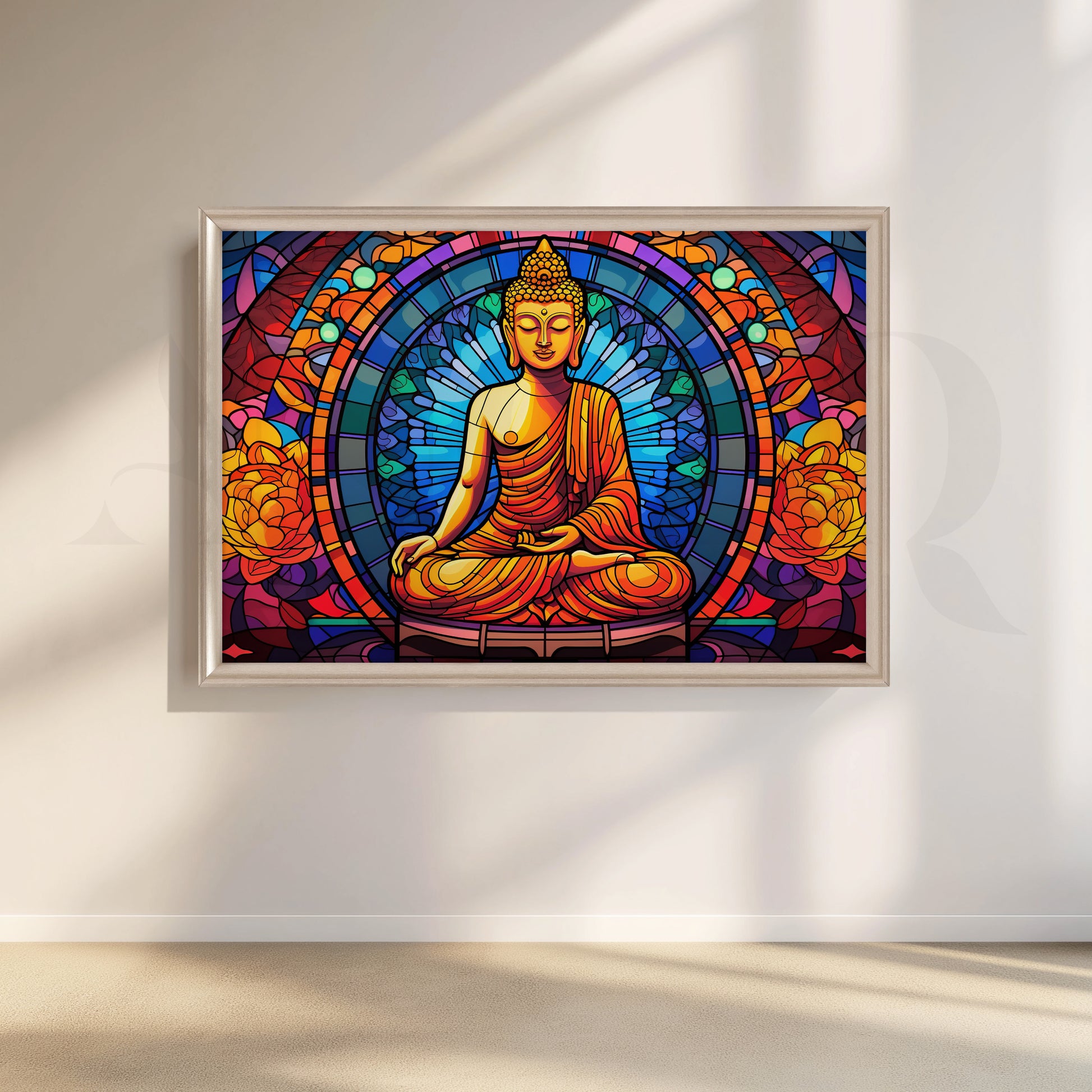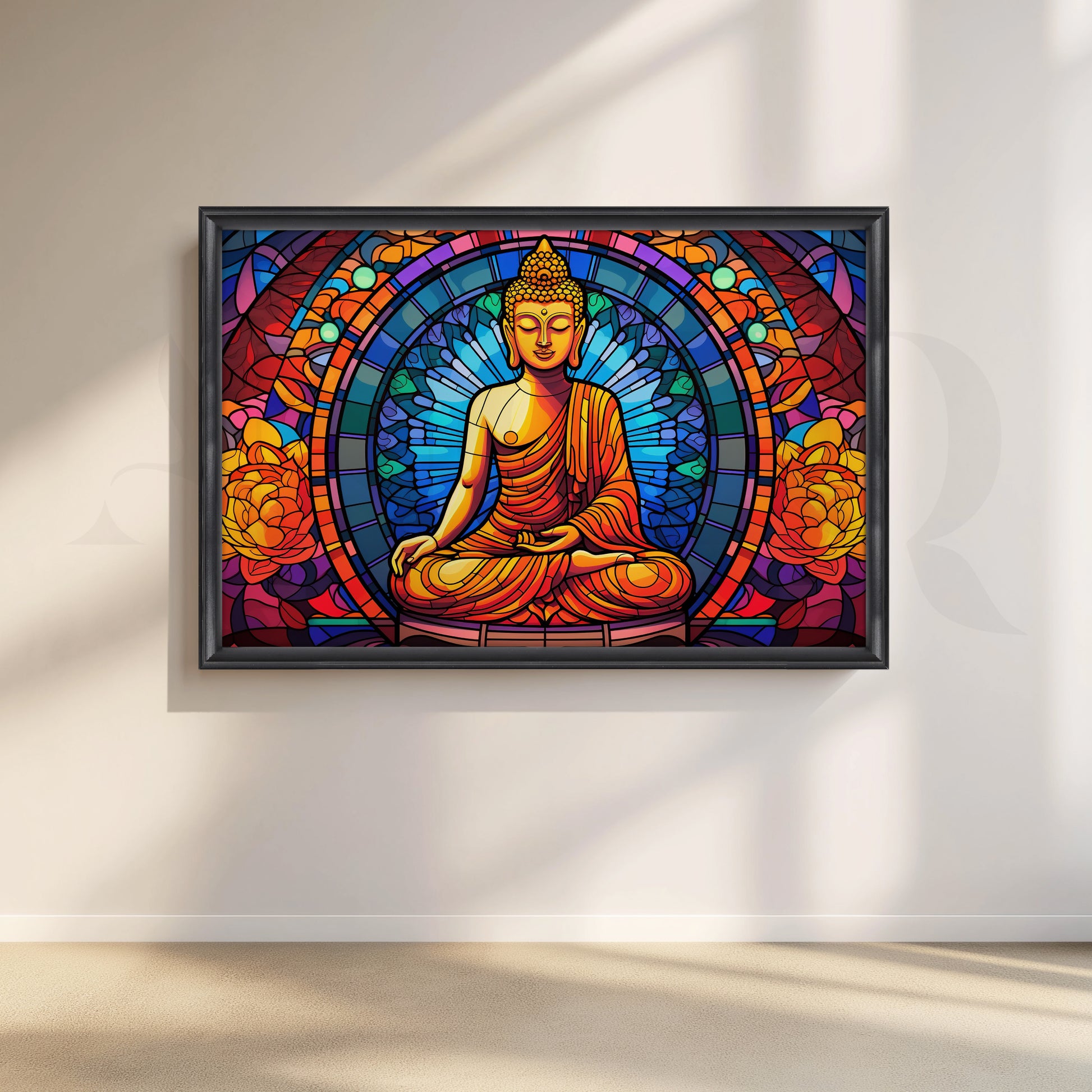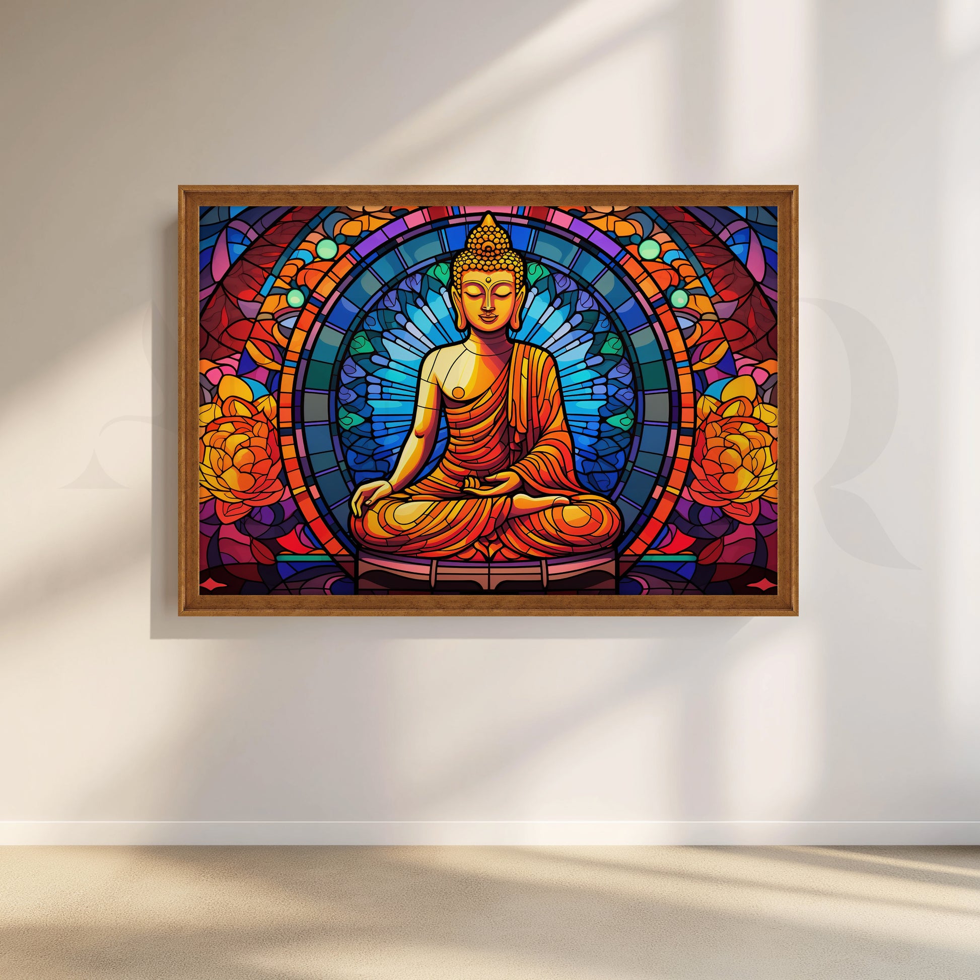 This stunning canvas painting features a serene Buddha in meditation, radiating peace and tranquility. The intricate details and vibrant colors make it a perfect addition to any space, enhancing your decor with a calming, Zen-inspired aesthetic.