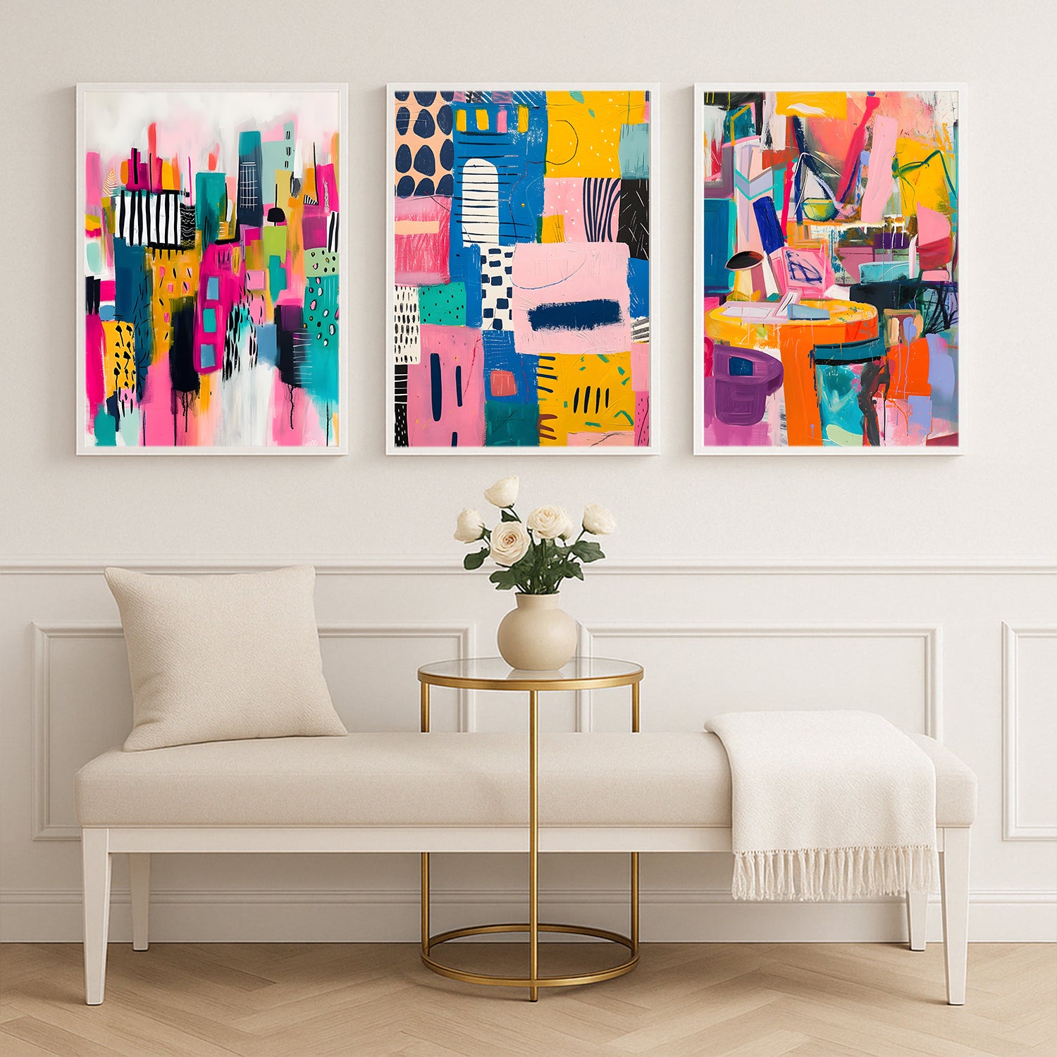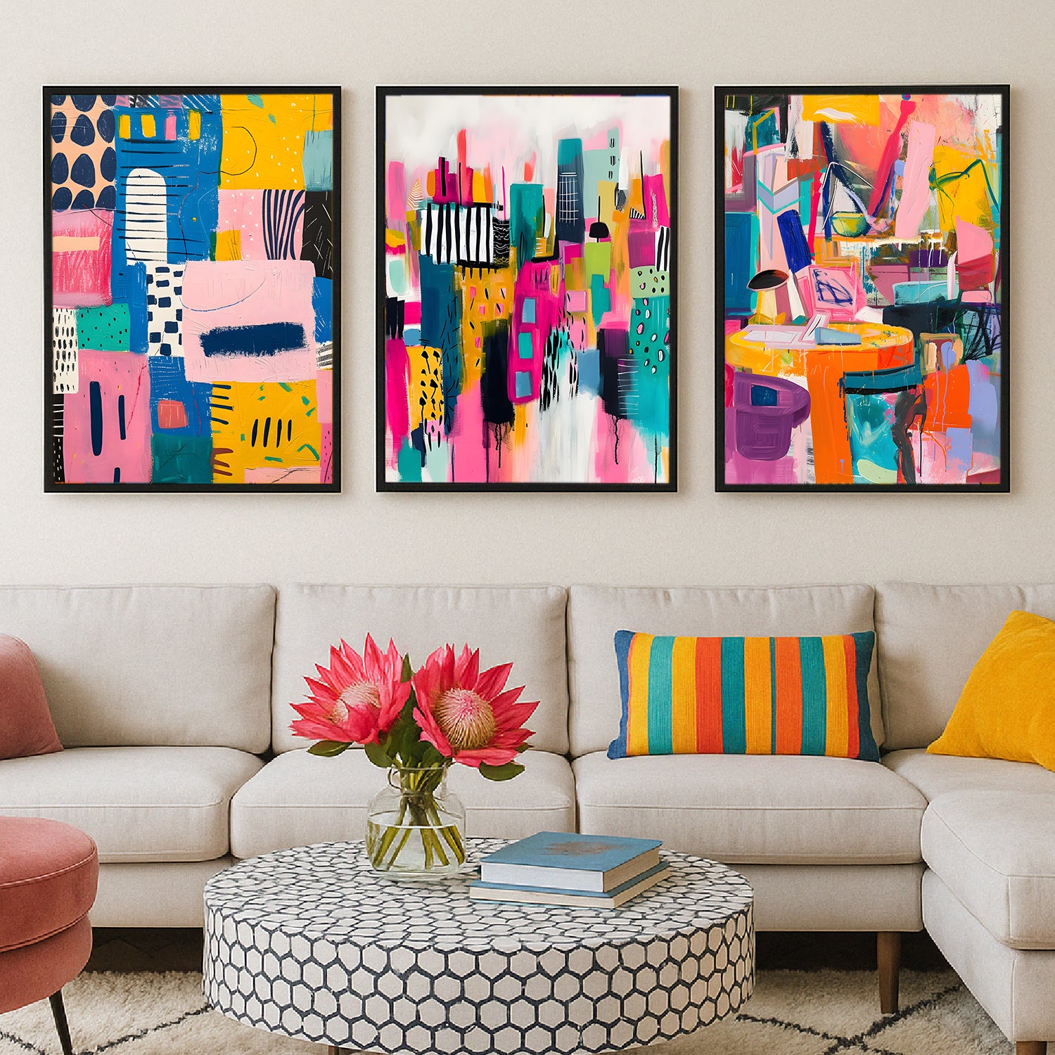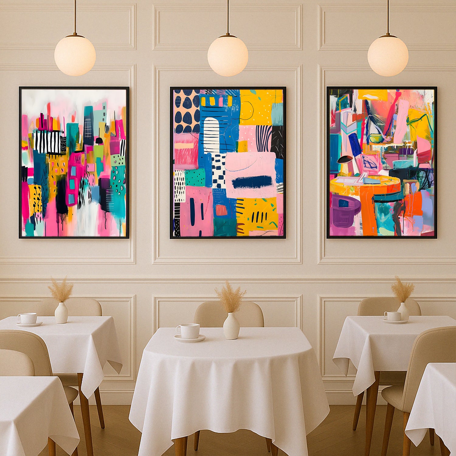 Vibrant Urban Energy Gallery Walls burst with bold shapes, street-inspired textures, and layered colors. This Gallery walls set adds a punch of personality—ideal for modern cafés, art-forward restaurants, or creative studios.