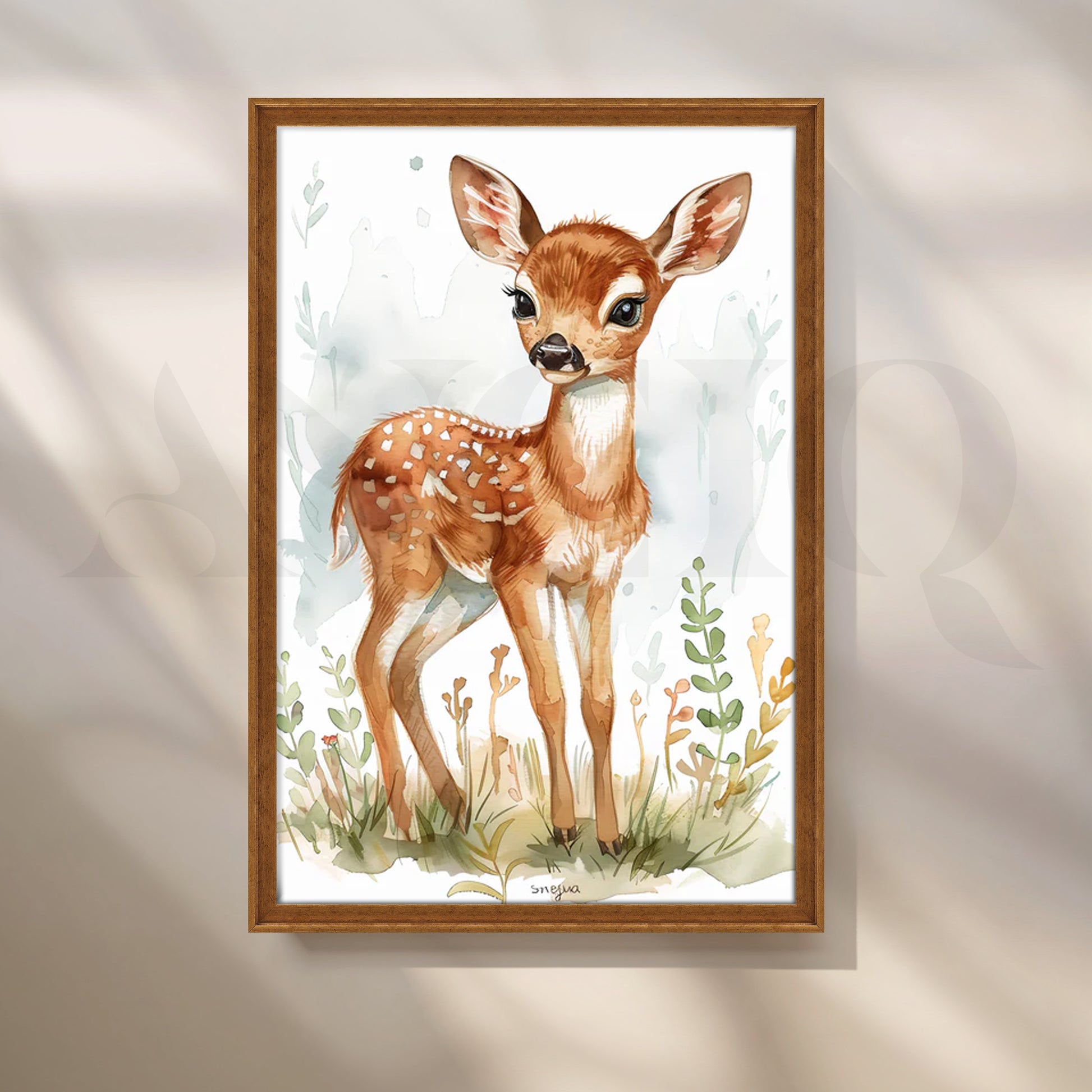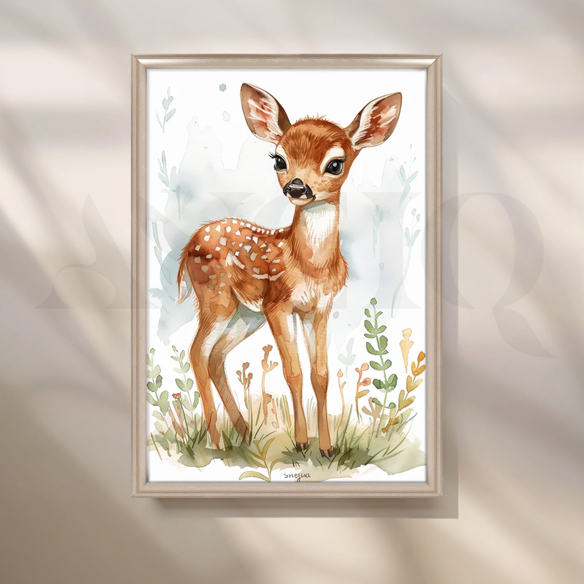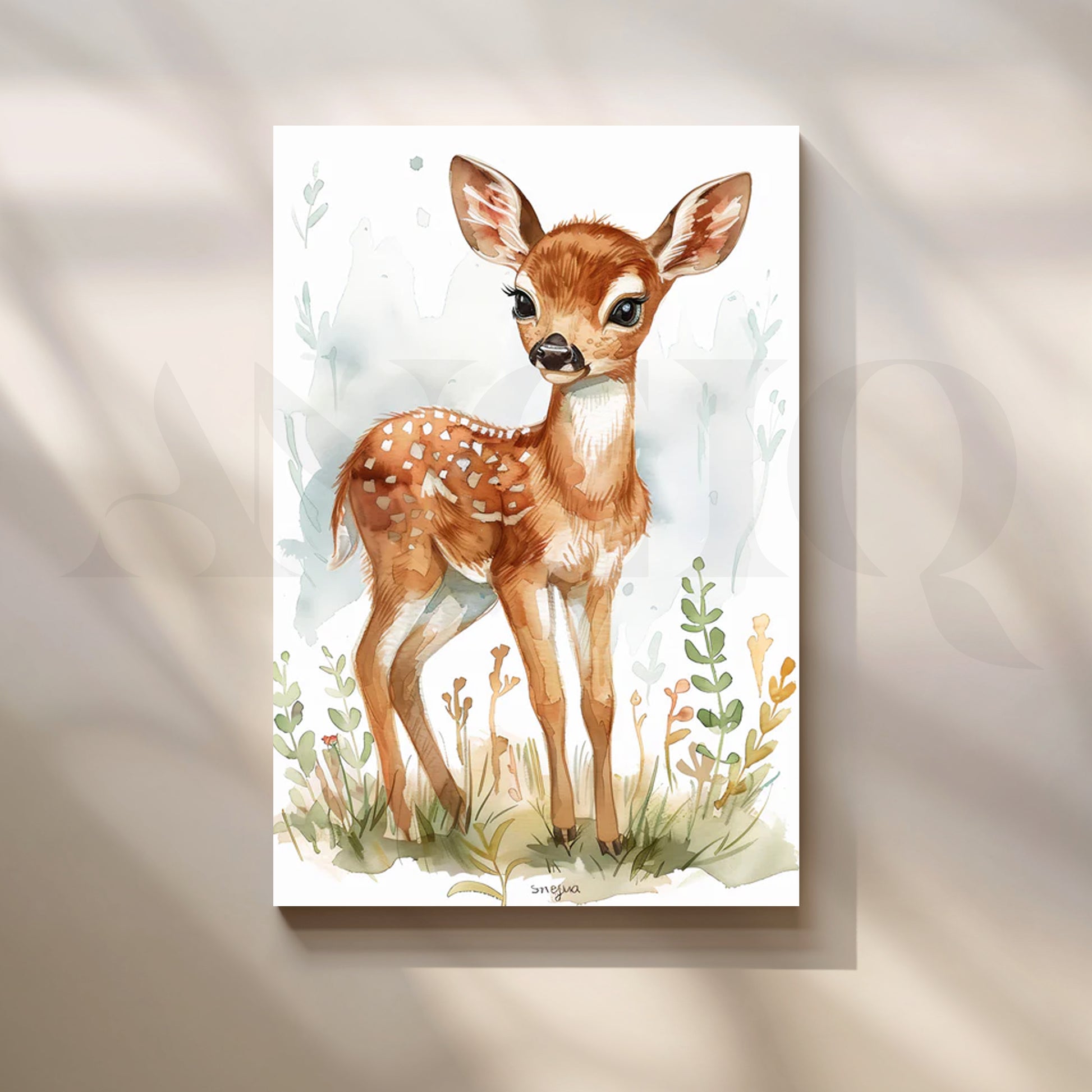 Sweet and soothing, this watercolor baby deer canvas blends soft neutrals and botanical accents—perfect nursery wall art, toddler room décor, or woodland baby shower gift. The gentle palette and whimsical style make it a calming animal print for a gender-neutral nursery, boho bedroom, or cozy reading corner. Available as a modern canvas painting for large wall spaces or small gallery walls, it pairs beautifully with Scandinavian, farmhouse, and minimalist interiors.
