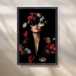 Midnight Bloom Floral Femme-Noir Canvas – Dramatic Dark Botanical Portrait