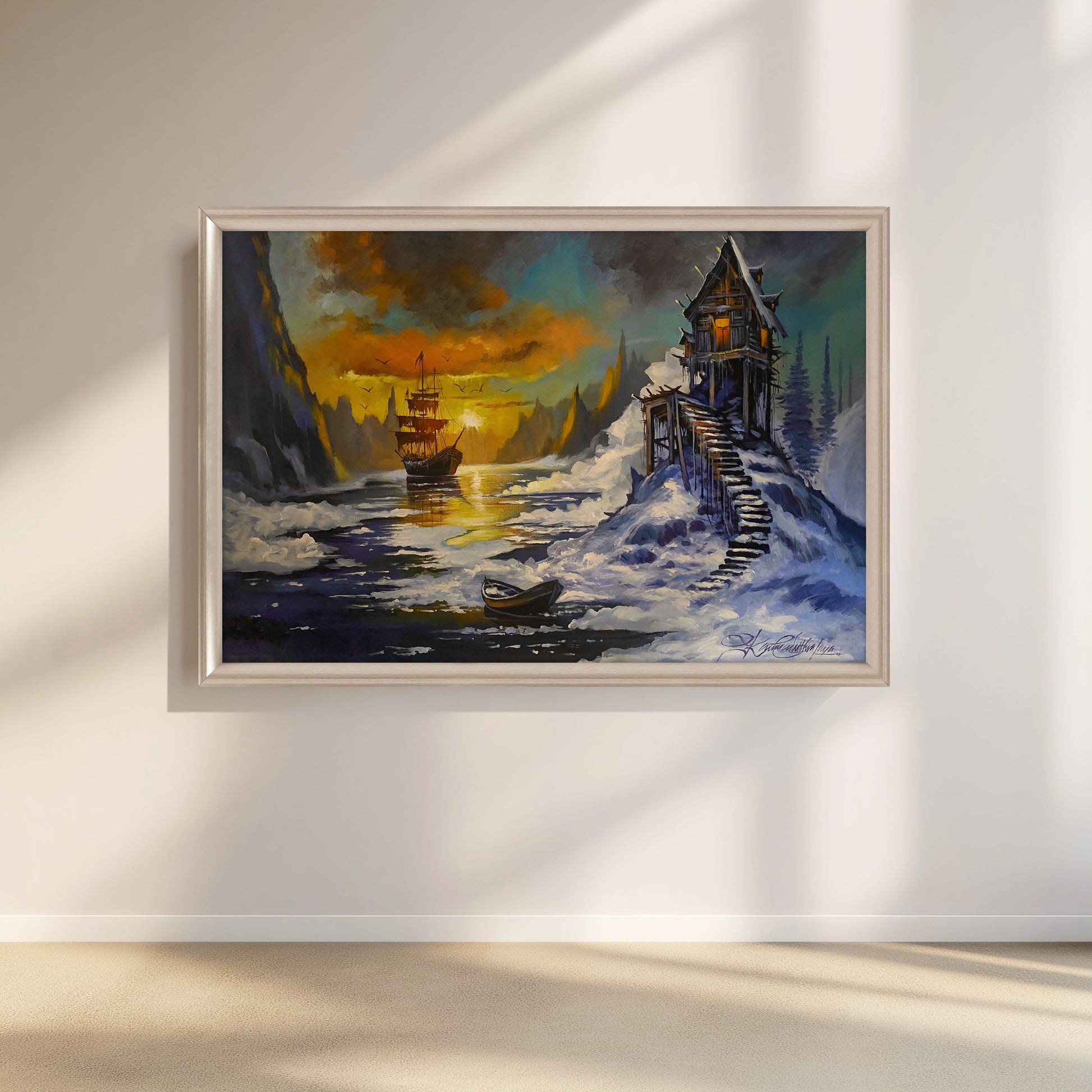 It’s canvas painting. Abstract and realism art, Dream land concept art work. Ice land.